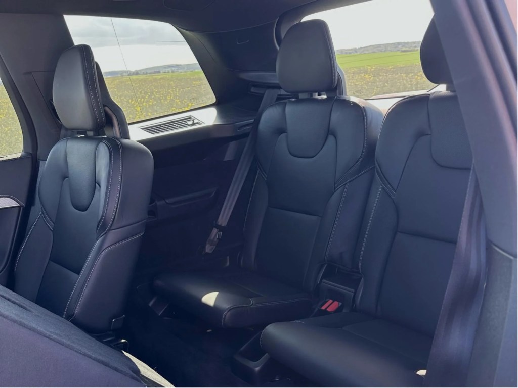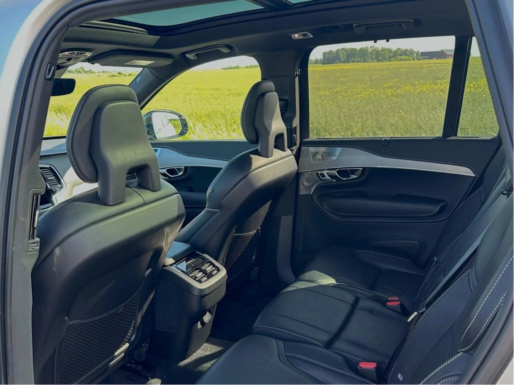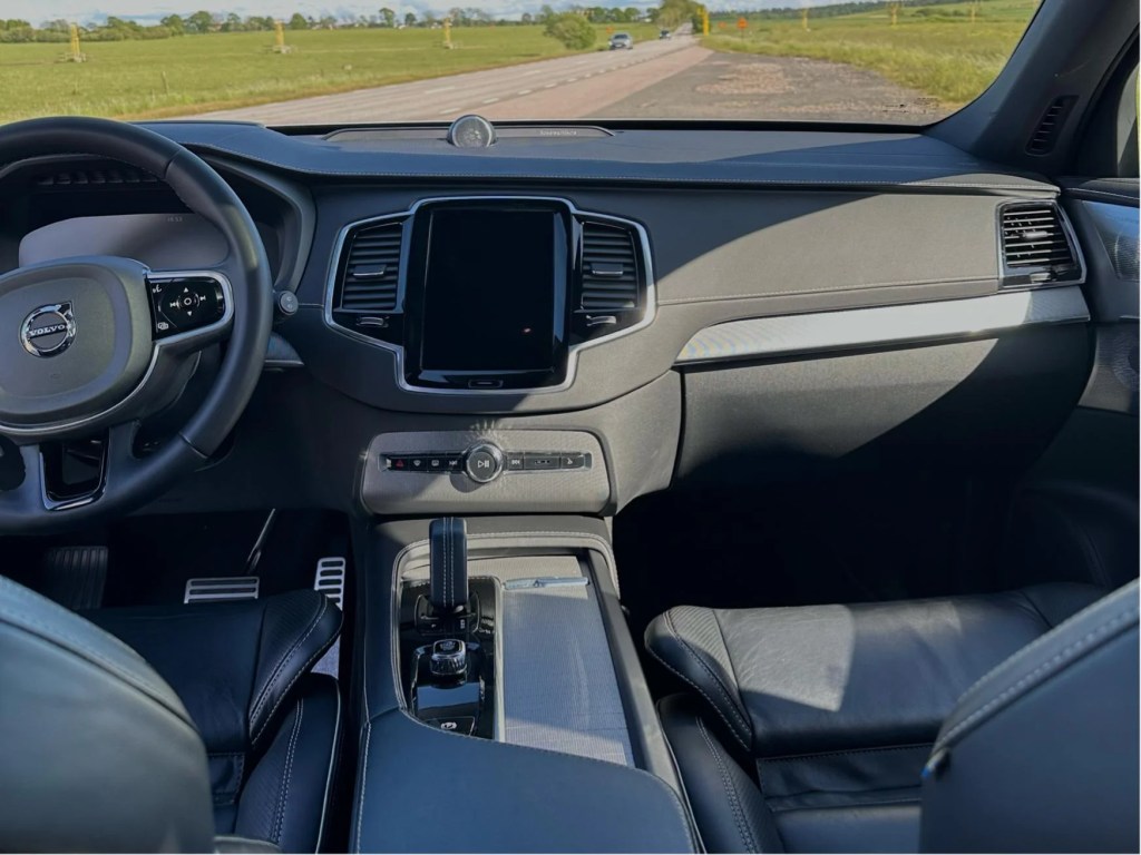 Volvo behärskar konsten att få kupéer att kännas som ett andra vardagsrum. I XC90 är det tyst, rymligt, stilrent – och i detta exemplar, lyxigt sportigt. R-Design-stolarna i svart nappaläder med kontrastsömmar ger ett fast men bekvämt stöd. Aluminiumdekor, svart innertak och den stora panoramaglastaketet bidrar till en modern och exklusiv känsla.