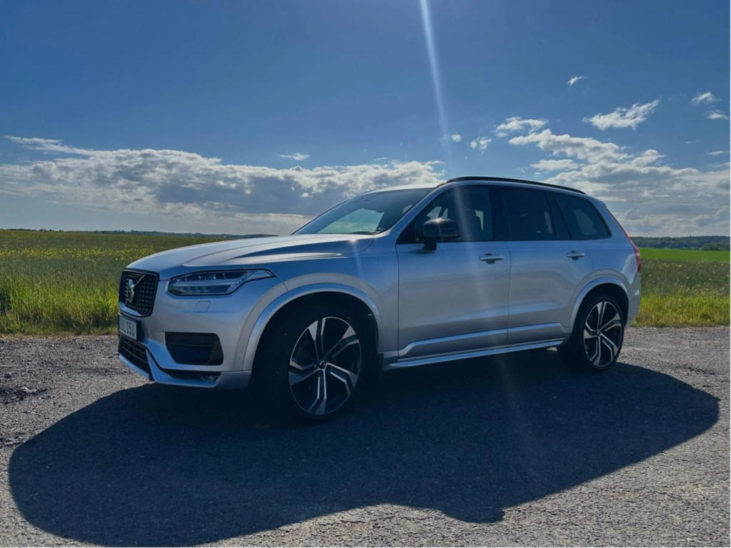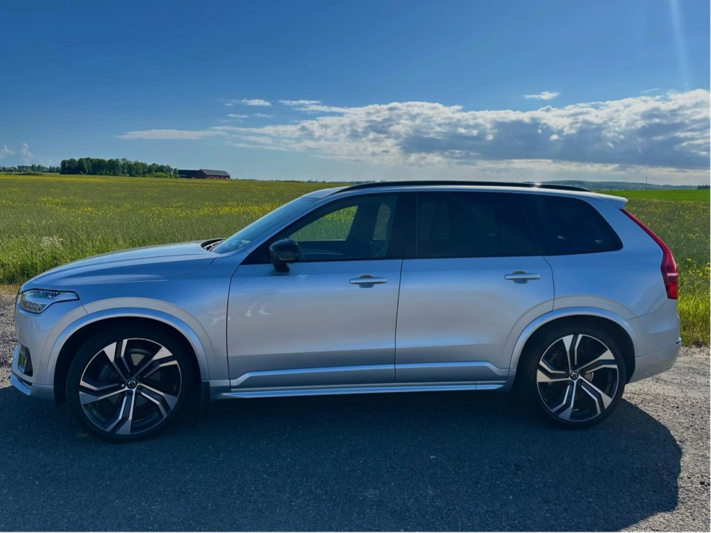 XC90 i R-Design är måhända den snyggaste versionen av bilen. Vassa linjer, svarta detaljer, och de maffiga 22-tumsfälgarna ger en närvaro på vägen som få andra SUV:ar i segmentet matchar. Från sidan ser profilen kraftfull ut utan att bli klumpig, och bakpartiet är distinkt Volvo med sina vertikala bakljus.