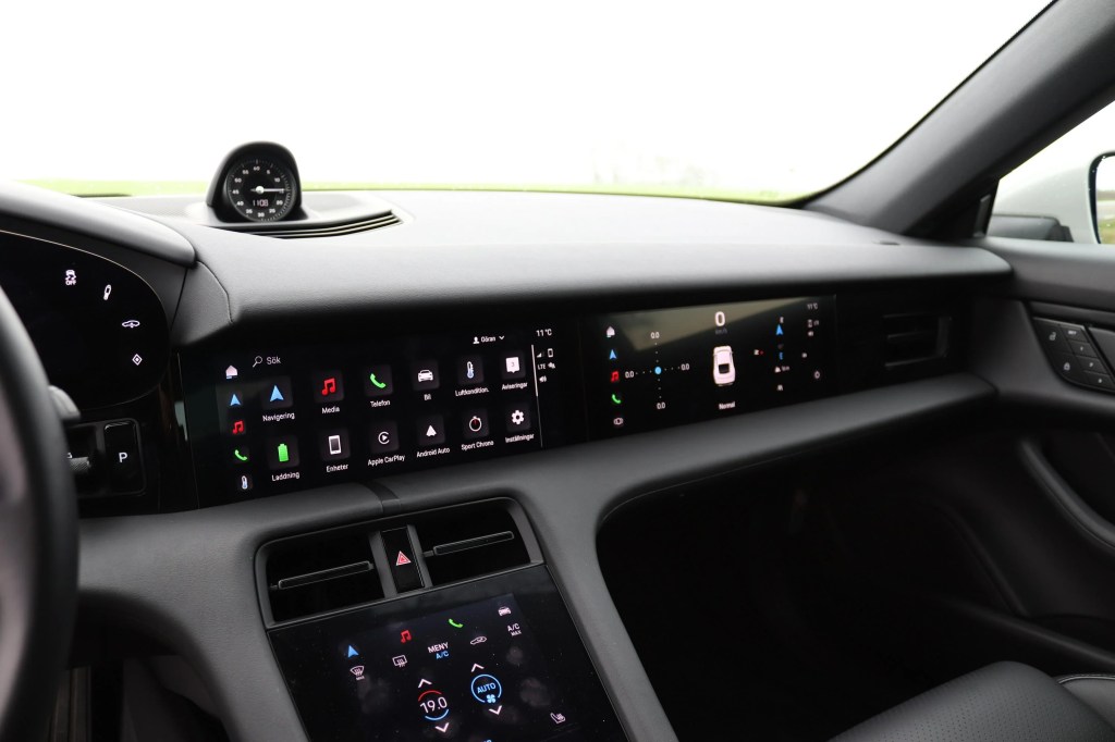 Porsche’s infotainmentsystem är snabbt, logiskt och välfungerande. Huvudskärmen är responsiv och lätt att navigera. Du får Apple CarPlay, Spotify-stöd, navigation, röststyrning och tillgång till en digital instrumentpanel som visar allt från energiflöde till G-krafter. Head-up displayen är tydlig och smidig, och tillsammans med Passagerardisplay och surround-view-kameror känns bilen ultramodern. Det är ett system som inte bara ser bra ut – det fungerar perfekt i vardagen.
