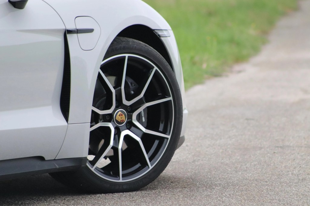 I Crayon-grått med svarta fönsterlister och LED Matrix-strålkastare ser Taycan ut som ett koncept från framtiden som Porsche faktiskt valde att sätta i produktion. Den har en låg och bred front, svepande taklinje och muskulösa skärmar – men utan att bli aggressiv. Den utstrålar mer precision än kraft. De 21-tums RS Spyder-fälgarna får bilen att sitta lågt, och detaljer som eldriven laddlucka, svarta detaljer, tonade rutor och ”PORSCHE”-projektion i dörrarna ger en försmak av framtiden. Den här bilen behöver inga vingar eller diffuser-extravaganza för att signalera sin kapacitet – den gör det med form och proportion.